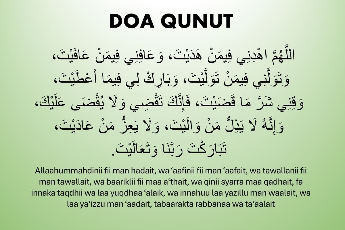 Informasi Doa Qunut Subuh: Arab, Latin, dan Artinya Lengkap 22 Februari 2026 • 232 Dilihat • Salah satu amalan sunnah yang dikenal luas dalam shalat Subuh adalah membaca doa Qunut pada...