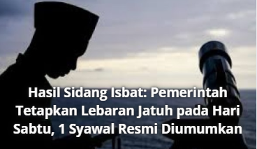 Informasi Hasil Sidang Isbat: Pemerintah Tetapkan Lebaran Jatuh pada Hari Sabtu, 1 Syawal Resmi Diumumkan 19 Maret 2026 • 2 Dilihat • Pemerintah melalui Kementerian Agama resmi mengumumkan penetapan Hari Raya Idul Fitri setelah menggelar sidang isbat...