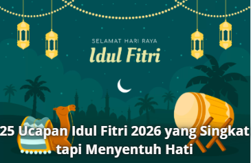 Informasi 25 Ucapan Idul Fitri 2026 yang Singkat tapi Menyentuh Hati 16 Maret 2026 • 2 Dilihat • Hari raya Idul Fitri selalu menjadi momen yang dinanti oleh umat Muslim di seluruh dunia....