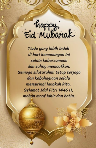 Informasi 30 Ucapan Idul Fitri 2026 untuk Kartu Hampers Lebaran, Lengkap dari Formal hingga Santai 12 Maret 2026 • 2 Dilihat • Menjelang akhir bulan Ramadan, suasana Lebaran mulai terasa di berbagai tempat. Aroma hidangan khas seperti...