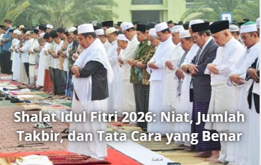 Informasi Shalat Idul Fitri 2026: Niat, Jumlah Takbir, dan Tata Cara yang Benar 12 Maret 2026 • 3 Dilihat • Shalat Idul Fitri merupakan ibadah sunnah yang sangat dianjurkan bagi umat Islam pada tanggal 1...