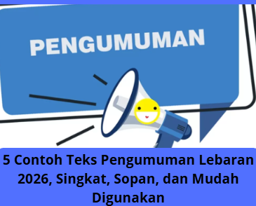 Informasi 5 Contoh Teks Pengumuman Lebaran 2026, Singkat, Sopan, dan Mudah Digunakan 12 Maret 2026 • 3 Dilihat • Hari Raya Idul Fitri merupakan momen yang dinantikan oleh umat Islam setelah menjalani ibadah puasa...