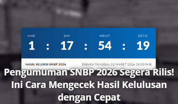 Informasi Pendidikan Kapan Pengumuman SNBP 2026? Ini Jadwal Resmi dan Cara Cek Hasilnya 30 Maret 2026 • Pengumuman hasil Seleksi Nasional Berdasarkan Prestasi (SNBP) 2026 dijadwalkan berlangsung pada Selasa, 31 Maret 2026...
