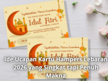 Informasi Ide Ucapan Kartu Hampers Lebaran 2026 yang Singkat tapi Penuh Makna 8 Maret 2026 • 2 Dilihat • Menjelang Hari Raya Idul Fitri, banyak orang mulai menyiapkan berbagai hal untuk menyambut momen istimewa...