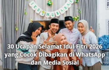 Informasi 30 Ucapan Selamat Idul Fitri 2026 yang Cocok Dibagikan di WhatsApp dan Media Sosial 6 Maret 2026 • Hari Raya Idul Fitri selalu menjadi momen yang sangat dinantikan oleh umat Islam setelah menjalani...