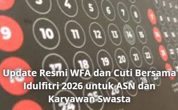 Informasi Update Resmi WFA dan Cuti Bersama Idulfitri 2026 untuk ASN dan Karyawan Swasta 5 Maret 2026 • 2 Dilihat • Hari Raya Idulfitri selalu menjadi momen yang dinanti masyarakat Indonesia. Selain sebagai waktu untuk beribadah...