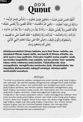 Berikut ini adalah bacaan doa qunut dalam teks Arab, latin, dan terjemahannya agar mudah dipelajari dan diamalkan.