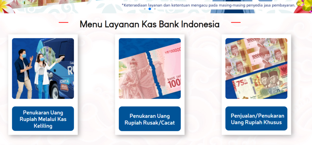 Bank sentral Indonesia, yaitu Bank Indonesia, menyediakan layanan penukaran uang melalui platform digital bernama PINTAR BI.