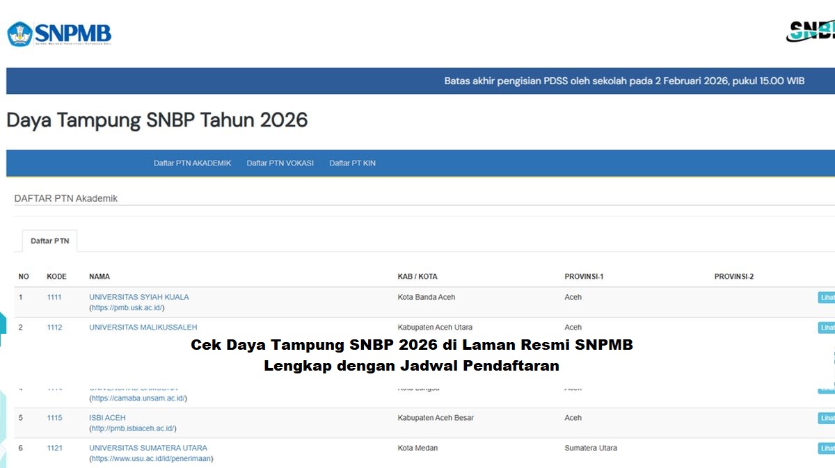 Berdasarkan keterangan dari laman resmi SNPMB 2026 yang diakses pada Selasa, 3 Februari 2026, berikut penjelasan lengkap mengenai cara cek daya tampung SNBP 2026 serta jadwal pendaftarannya.