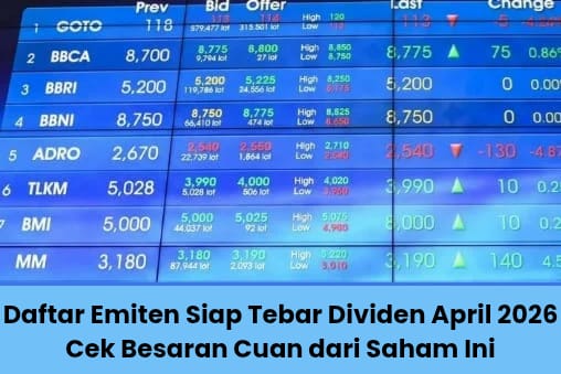 Daftar Emiten Siap Tebar Dividen April 2026, Cek Besaran Cuan dari Saham Ini