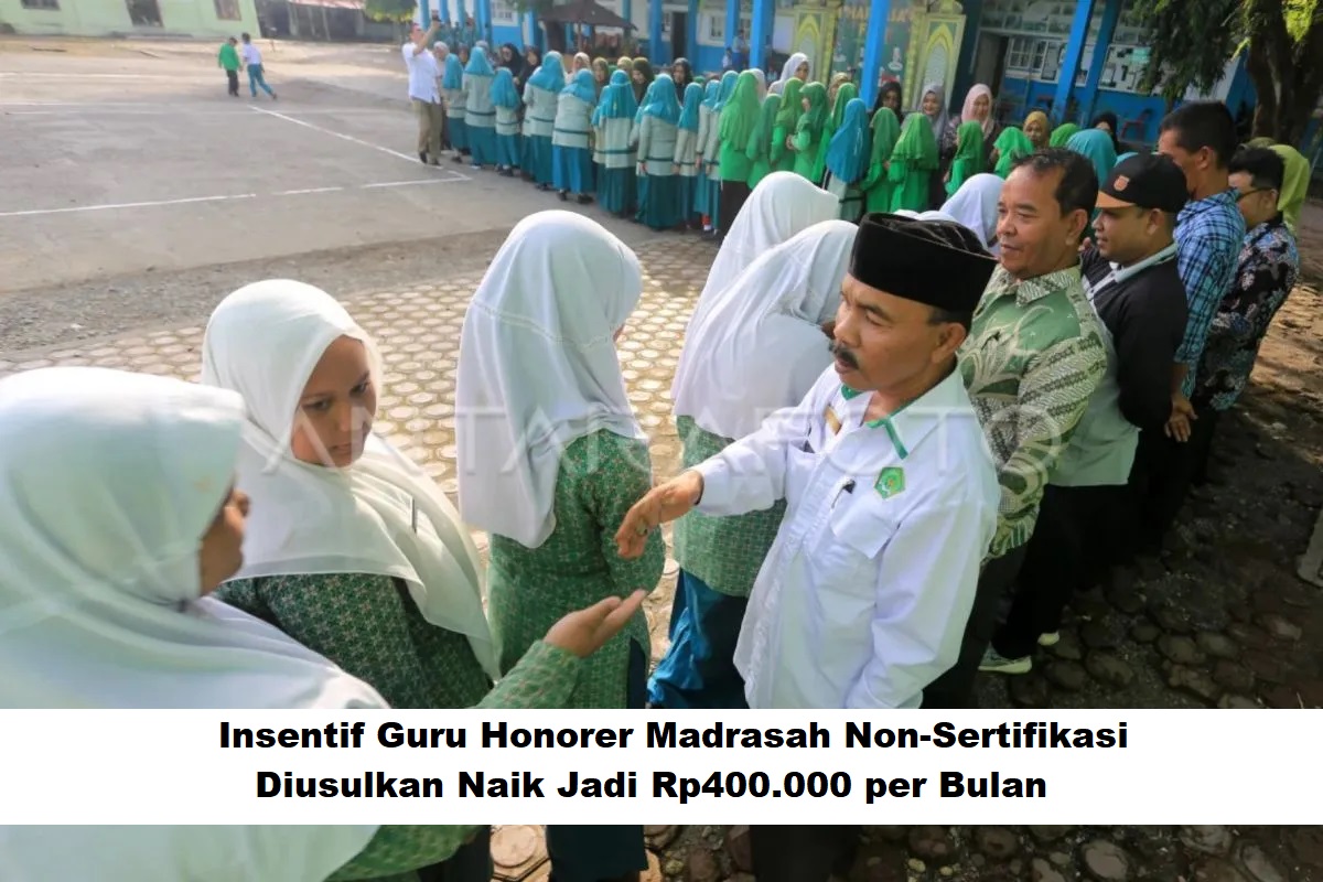Kemenag tengah mengkaji kenaikan insentif guru honorer madrasah non-sertifikasi dari Rp250.000 menjadi Rp400.000 per bulan sebagai upaya meningkatkan kesejahteraan.