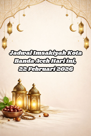 Adapun jadwal Imsakiyah pada tanggal 22 Februari 2026 untuk wilayah Kota Banda Aceh dan sekitanya sebagai berikut.