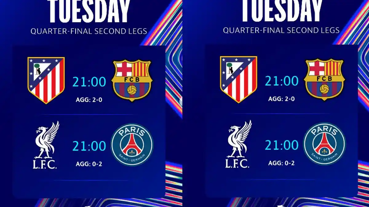 Jadwal UEFA Champions League malam ini menghadirkan dua pertandingan krusial pada leg kedua babak perempat final musim 2025/2026. Laga yang dinanti adalah Atletico Madrid vs Barcelona serta Liverpool vs Paris Saint-Germain.