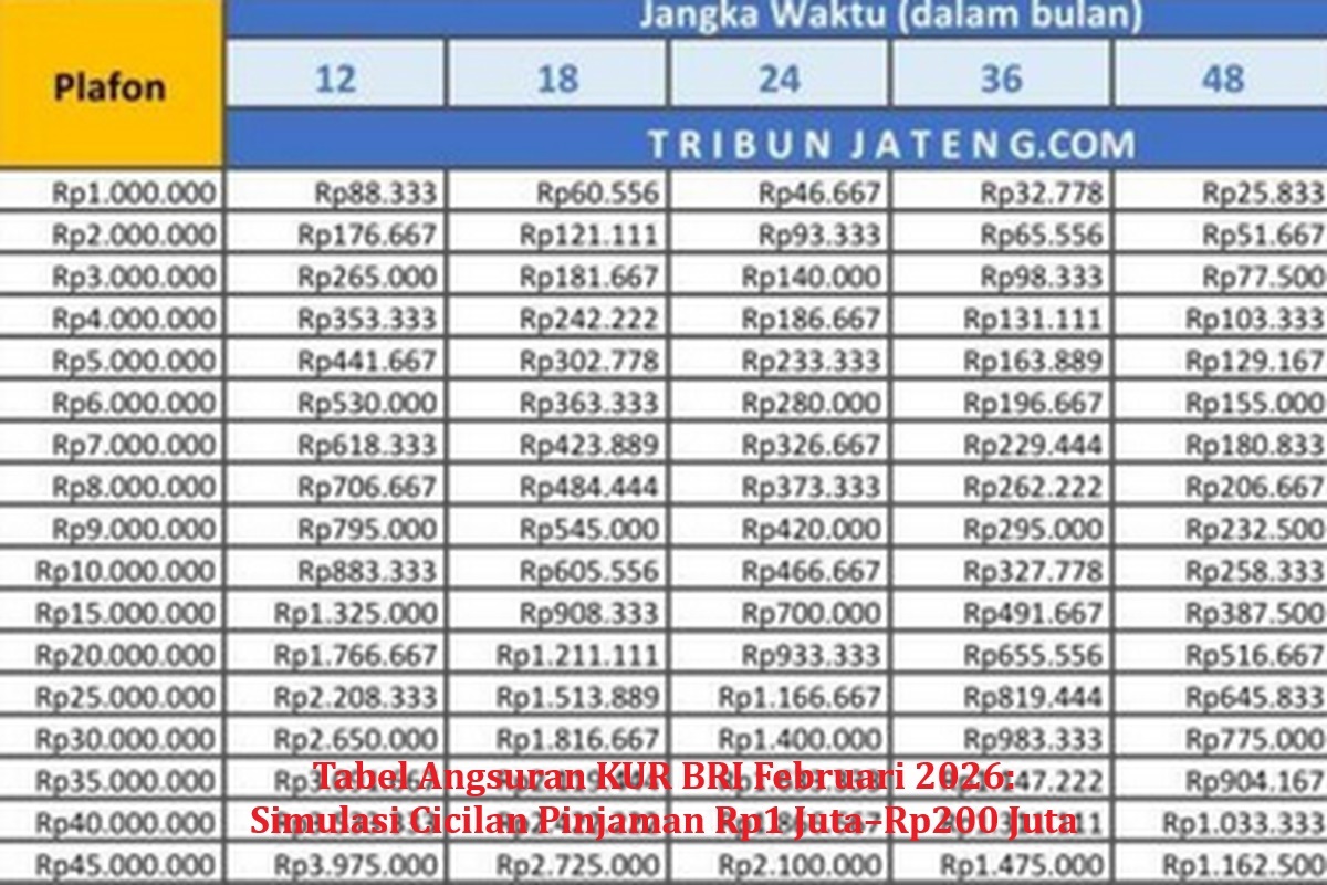 Simulasi Tabel Angsuran KUR BRI Februari 2026