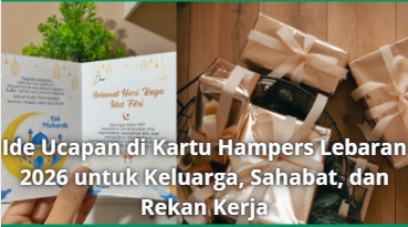 Informasi Ide Ucapan di Kartu Hampers Lebaran 2026 untuk Keluarga, Sahabat, dan Rekan Kerja 12 Maret 2026 • 1 Dilihat • Hari Raya Idul Fitri selalu identik dengan berbagai tradisi yang penuh kehangatan, salah satunya adalah...